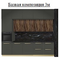 Сочетание цвета и текстуры в данном гарнитуре создают ощущение локации в утреннем лесу, а золотистые элементы напоминают капельки росы, переливающиеся под солнечным светом. П-образный дизайн позволит удобно расположить обеденную группу и другие функциональные предметы. Конечно, гарнитуры такого строения наиболее подходят для просторного помещения. Хотя, при правильном планировании и подходящем расположении можно выбрать такой вариант и для компактной кухни.